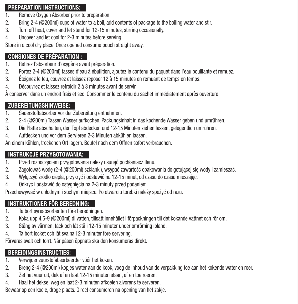 - AJOUTEZ JUSTE DE L'EAU : Chaque entrée est facile à préparer en cas d'urgence en utilisant simplement de l'eau.