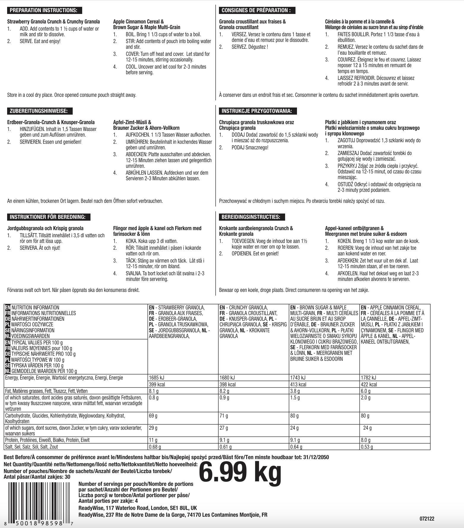 - 10 sachets de multi céréales au sucre brun et au sirop d'érable (40 portions)