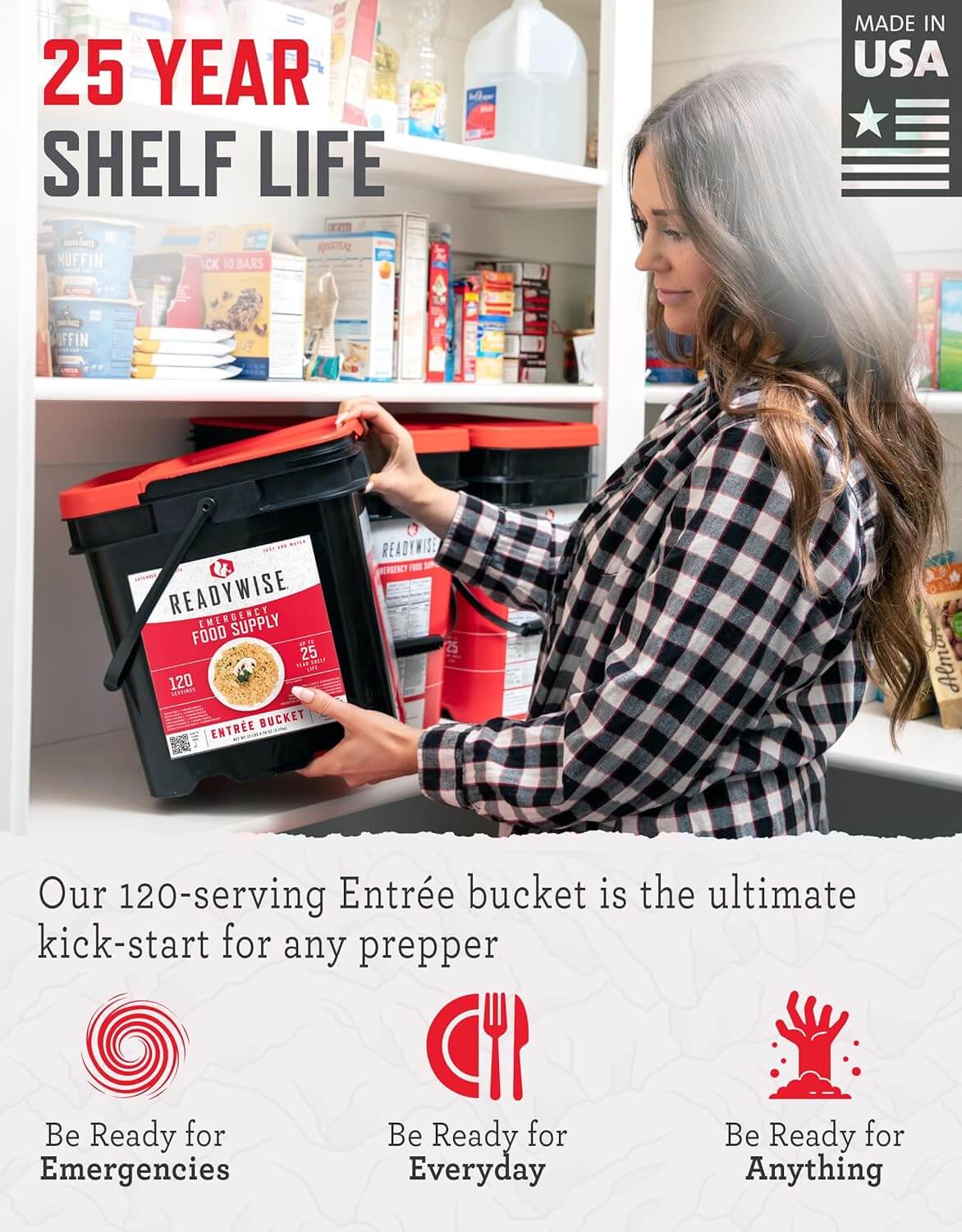 - KIT DE SURVIE ESSENTIEL : chaque seau contient 120 portions avec 13 options de repas différentes.